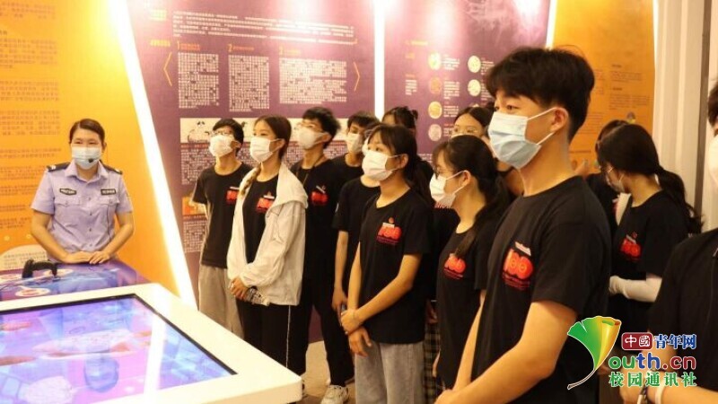 图为志愿者们在禁毒教育基地学习毒品知识。中国青年网通讯员林晓晴供图