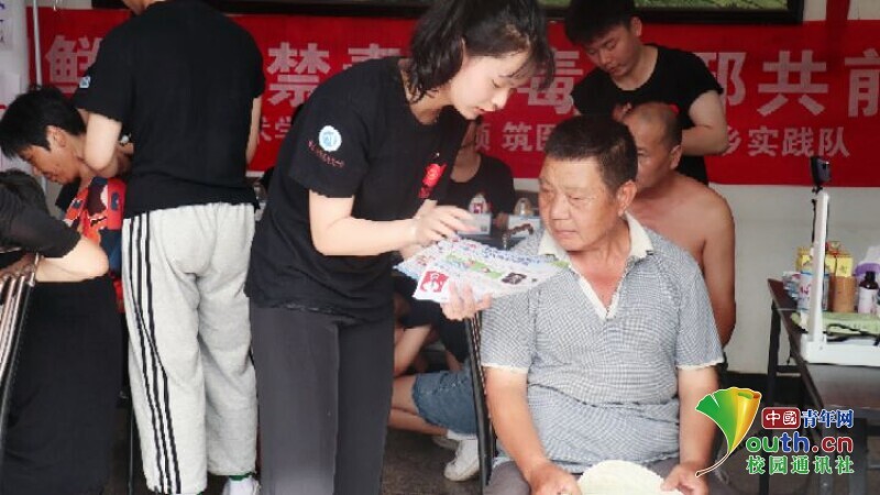 图为志愿者为樟洋村居民宣传讲解禁毒知识。中国青年网通讯员林晓晴供图