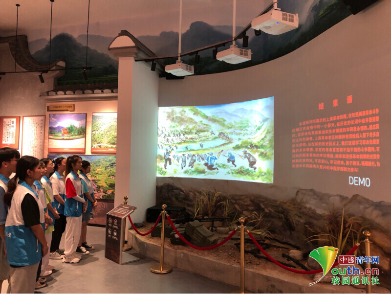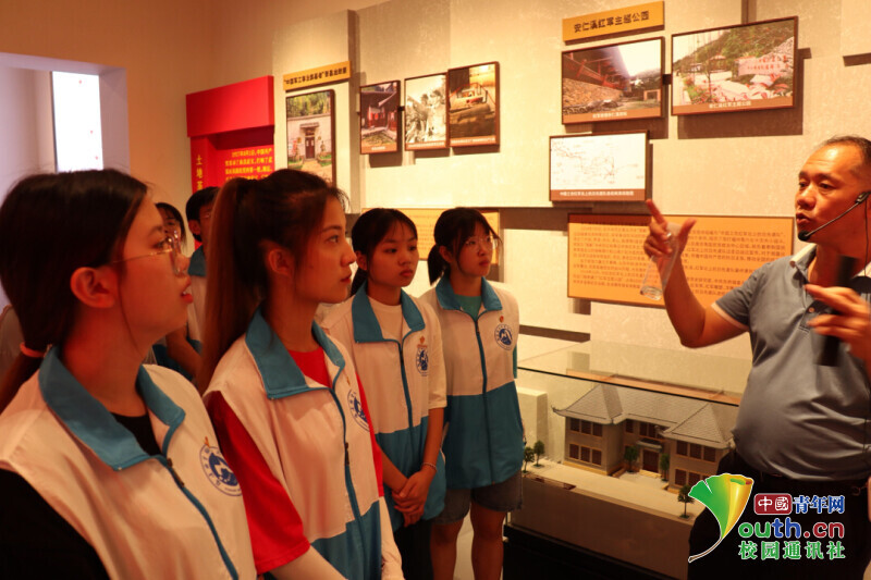 图为团队在听讲解员介绍游击队的故事。中国青年网通讯员 王冠宏 摄