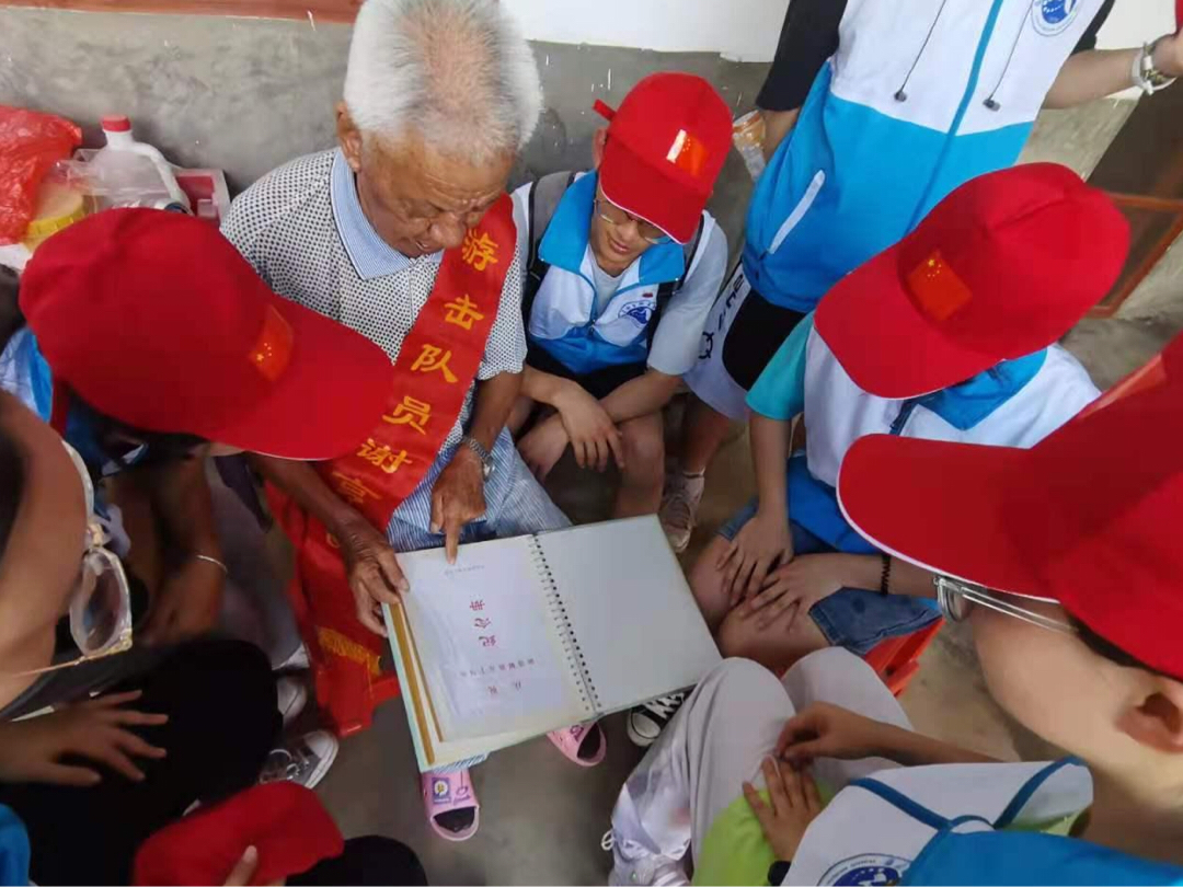 图为团队成员在听老游击队员谢爷爷讲述艰难的革命历史。中国青年网通讯员 杨诗颖 摄