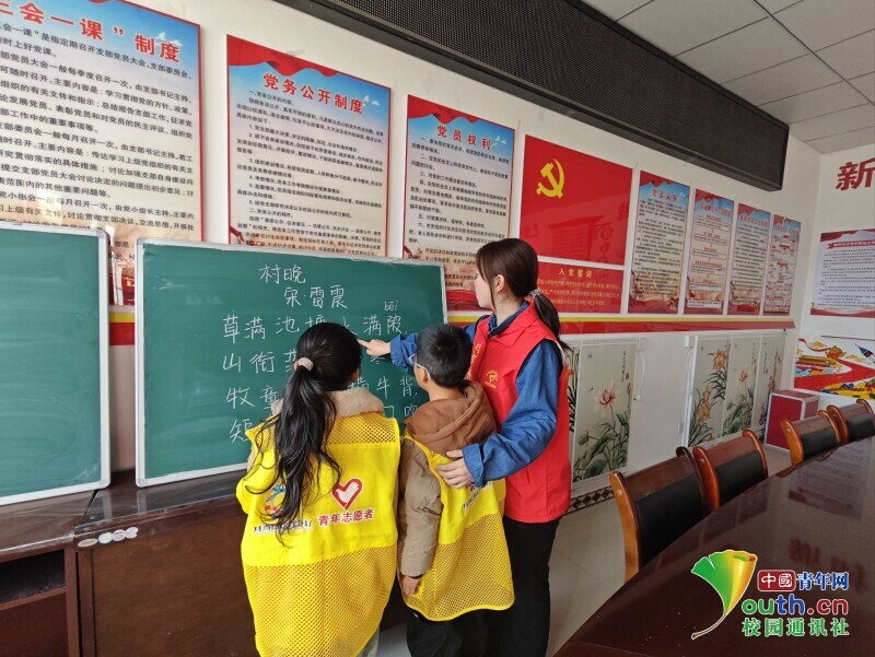 图为支教志愿者辅导学生背诵古诗,巩固传统文化知识。穆海霞 供图