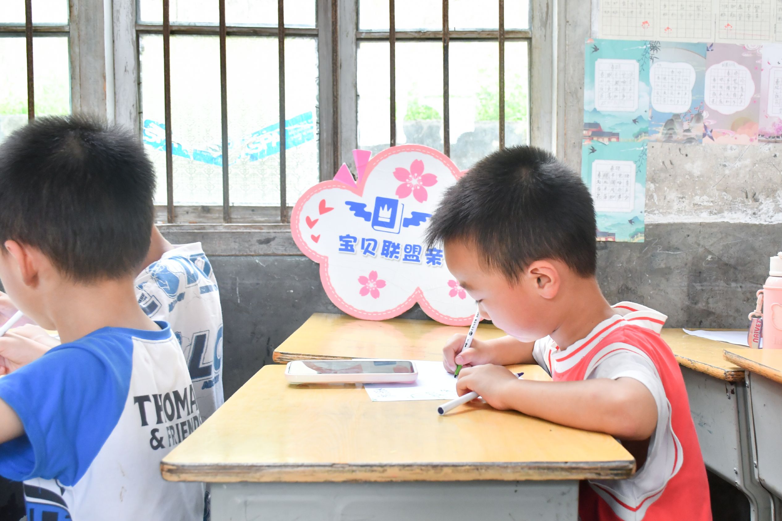 图为小朋友在画防溺水手抄报。中国青年网通讯员 高裕 供图