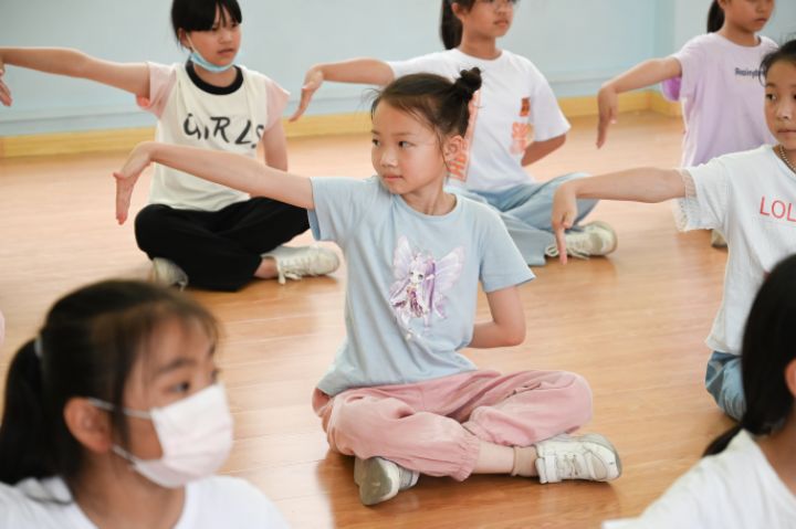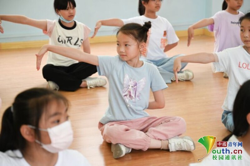 图为小朋友们认真学习舞蹈动作。中国青年网通讯员 熊雨婷 摄