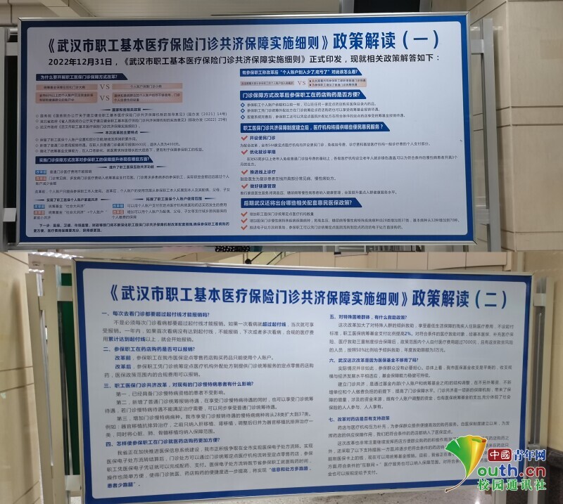 图为实践队员在武汉大学人民医院(湖北省人民医院)拍摄的医保政策解读宣传栏。中国青年网通讯员 张心蕊 供图