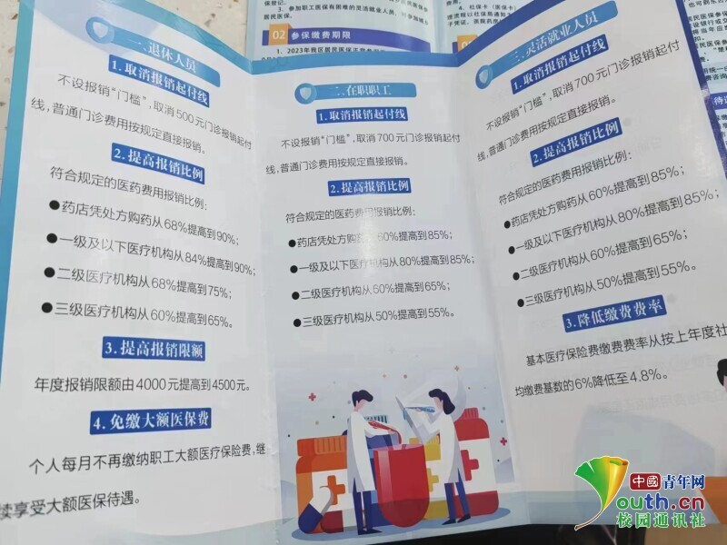 图为实践队员在东湖村社区党群服务中心拍摄的职工医保门诊共济政策宣传页。中国青年网通讯员 张心蕊 供图