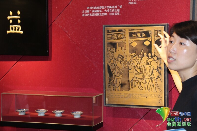 讲解员为实践团队介绍豆瓣的起源及其发展史,包括豆瓣进入皇宫,成为贡品的传奇经历,慈禧太后对郫县豆瓣的厚爱。团队成员仔细记录,并且积极提问,了解了许多关于豆瓣的文化。 中国青年网通讯员 段松岐 摄
