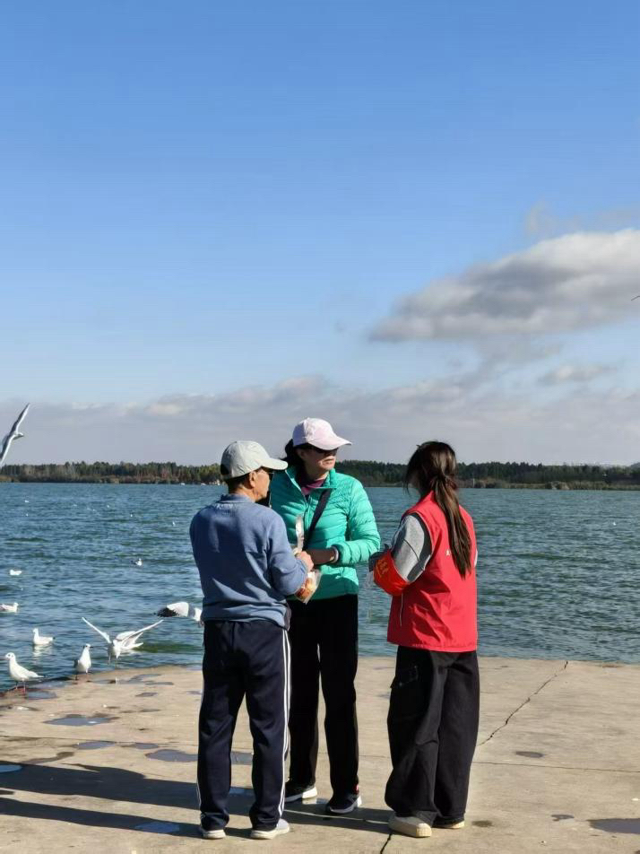 在志愿服务实践中,青年志愿者每周定期于海埂大坝开展护鸥知识科普、文明旅游引导、交通秩序协管及环境清洁等服务,推动形成公众参与生态保护的氛围。志愿者张必都作为连续三年参与的典型,在访谈中提及游客护鸥意识的显著提升。