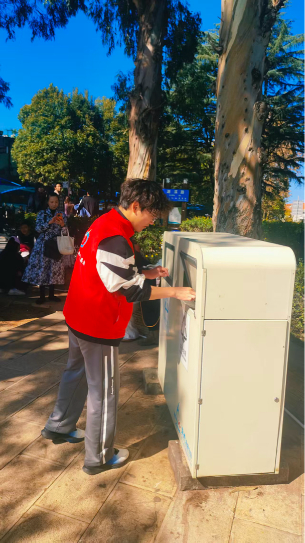 图为志愿者在进行垃圾分类。滇池学院 供图