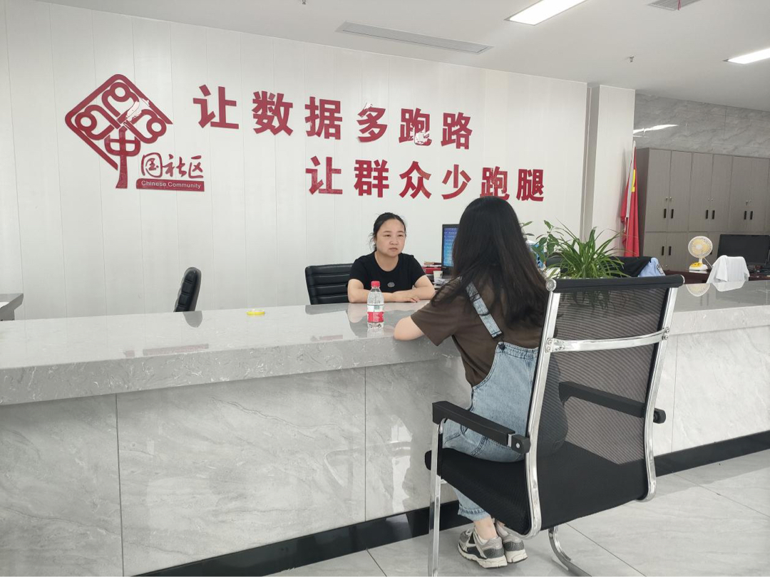 图为实践队员在采访社区工作人员。中国青年网通讯员 向玉萍 供图