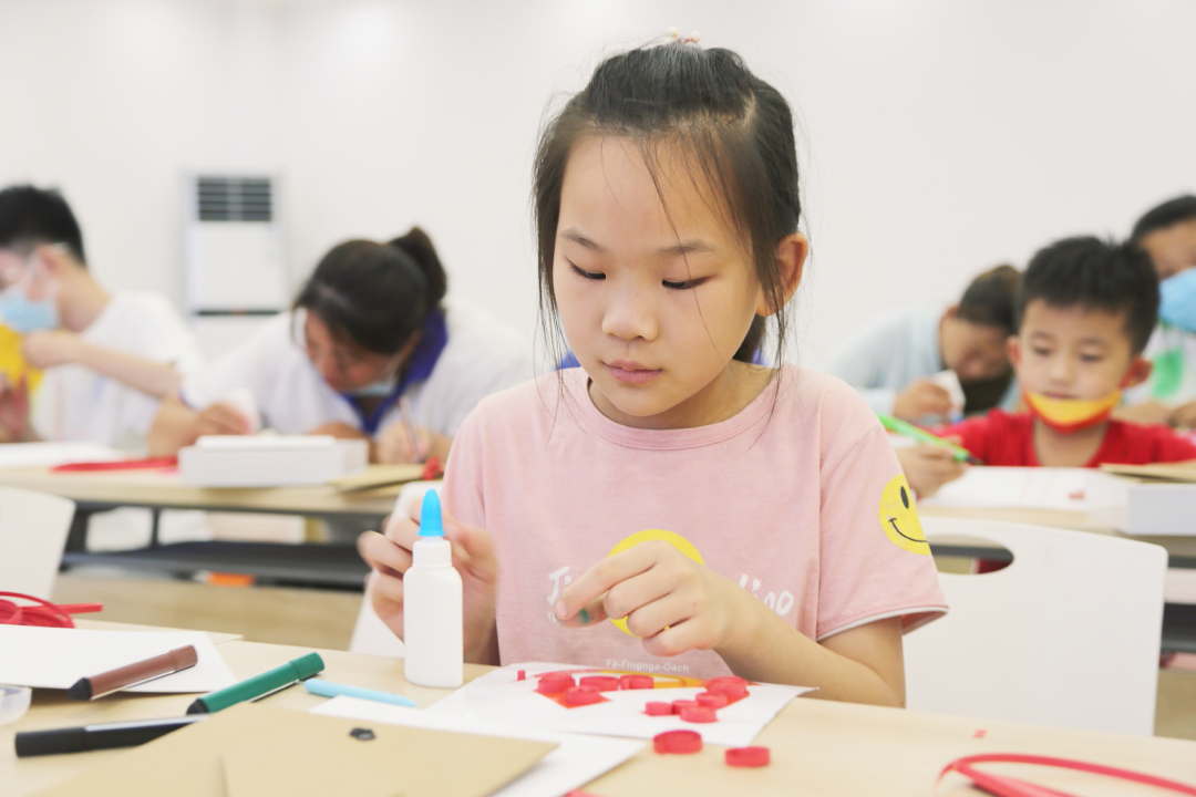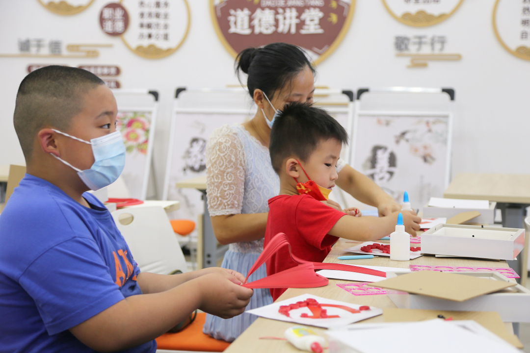 图为社区青少年饶有兴致地制作红色衍纸画。中国青年网通讯员 许景惠 摄