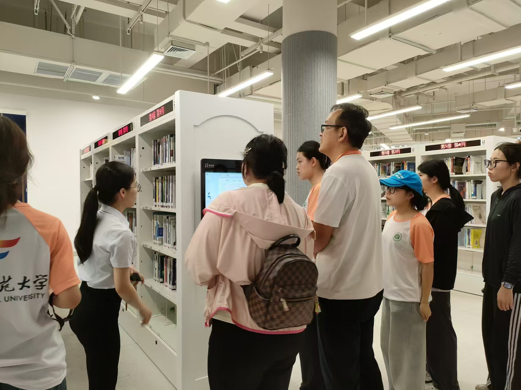 图为调研团在王飞老师的带领下参观图书馆。黄金雅 供图