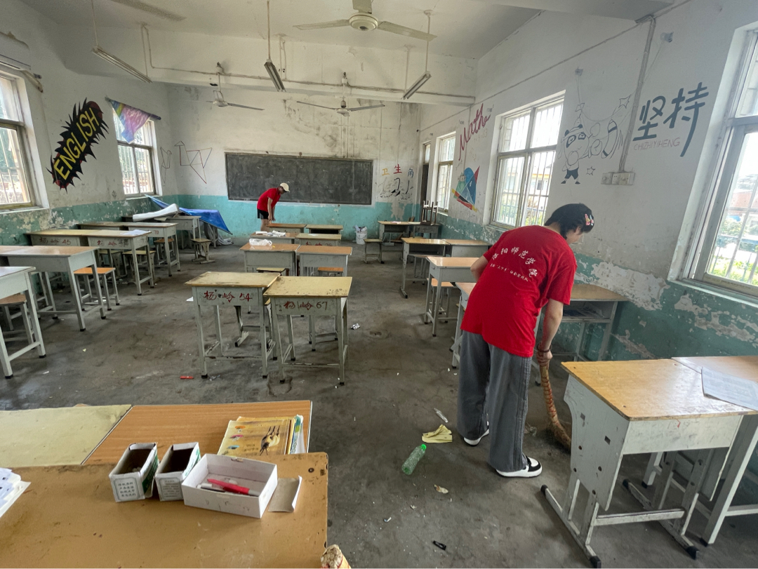 图为实践队员为迎接学生入学打扫教室卫生。中国青年网通讯员 胡如冰 供图