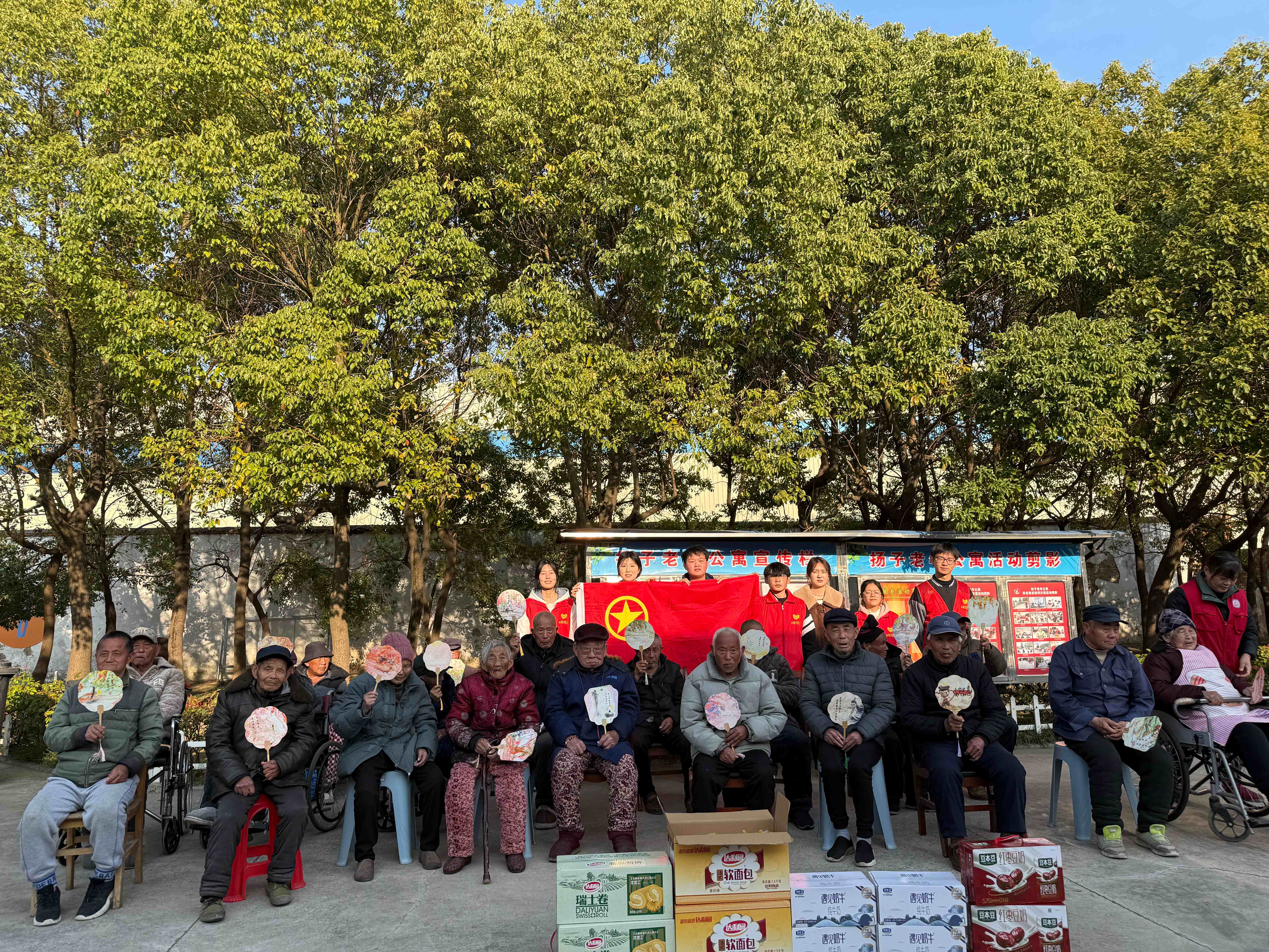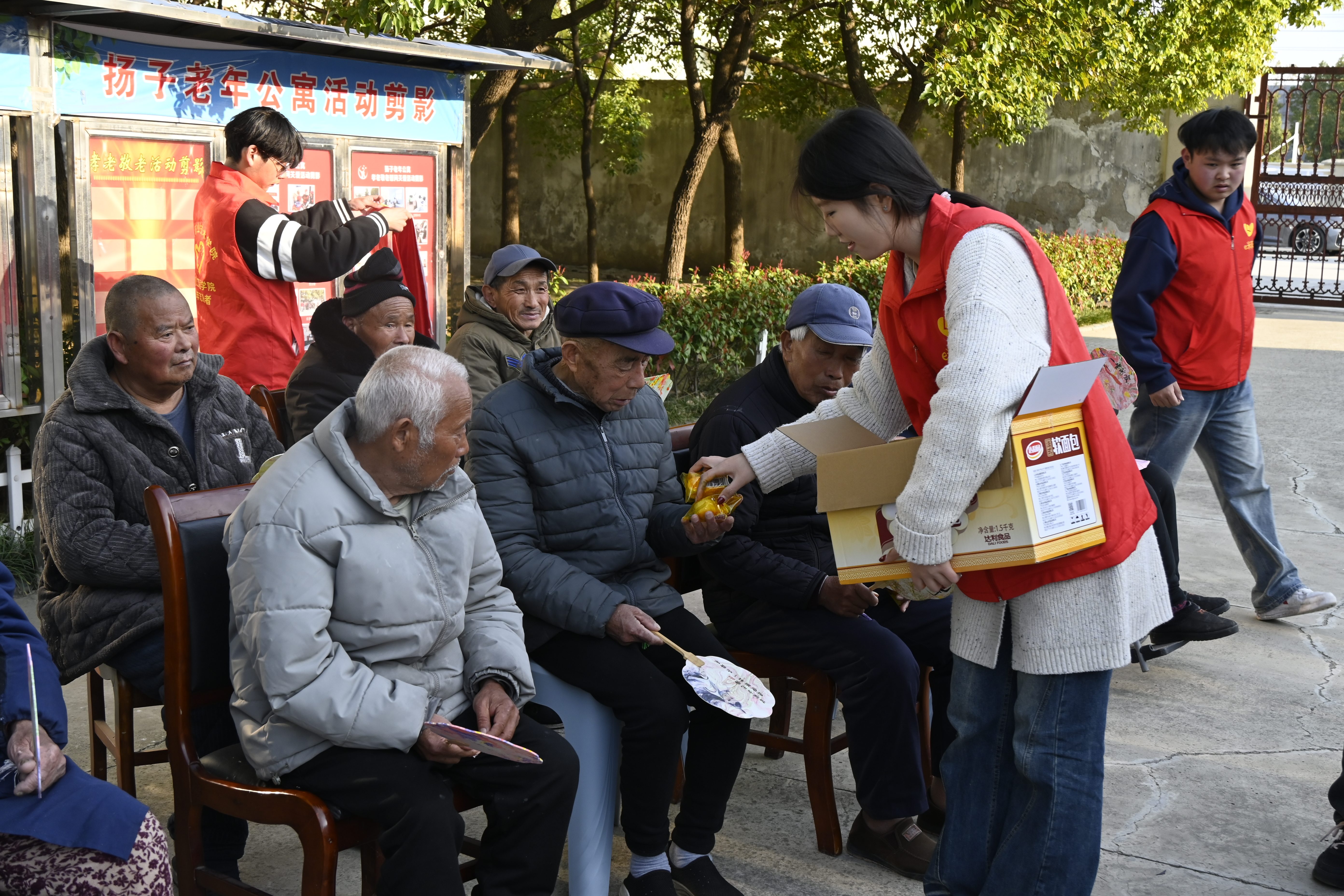 图为志愿者为老人们分发慰问品。李文豪 供图