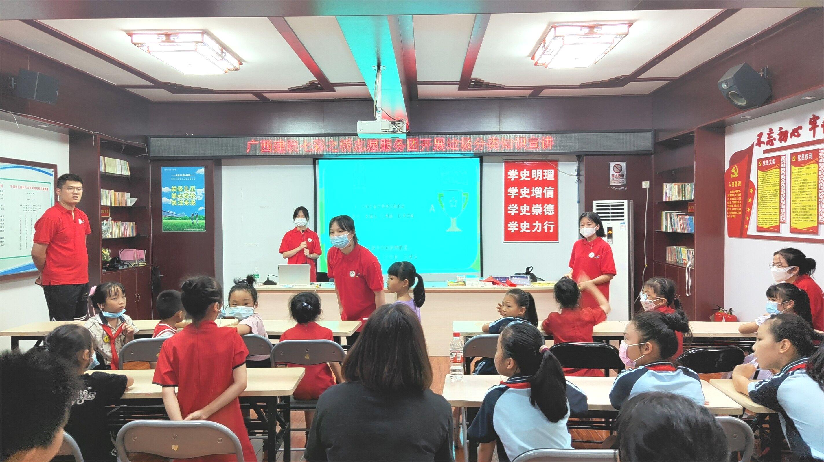 最后,志愿者组织开展了争做创建文明城市“紫袖小能手”活动,以观看视频、PPT讲解、有奖问答以及垃圾分类投掷趣味游戏等形式,为小朋友们上了一堂生动有趣的垃圾分类知识宣讲课。