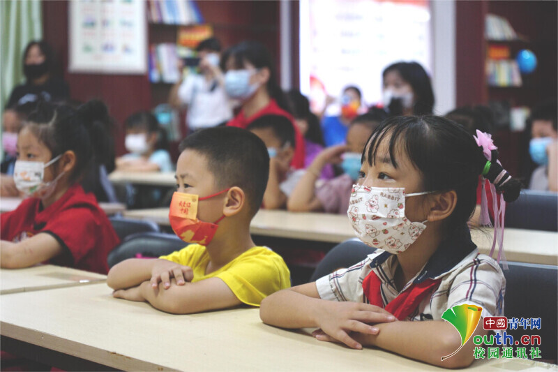 图为小朋友们认真聆听“民族团结”红色主题教育微课堂。中国青年网通讯员 黄诗洋 摄