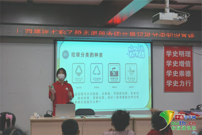 图为实践队为小朋友介绍垃圾分类的种类。中国青年网通讯员 黄诗洋 摄