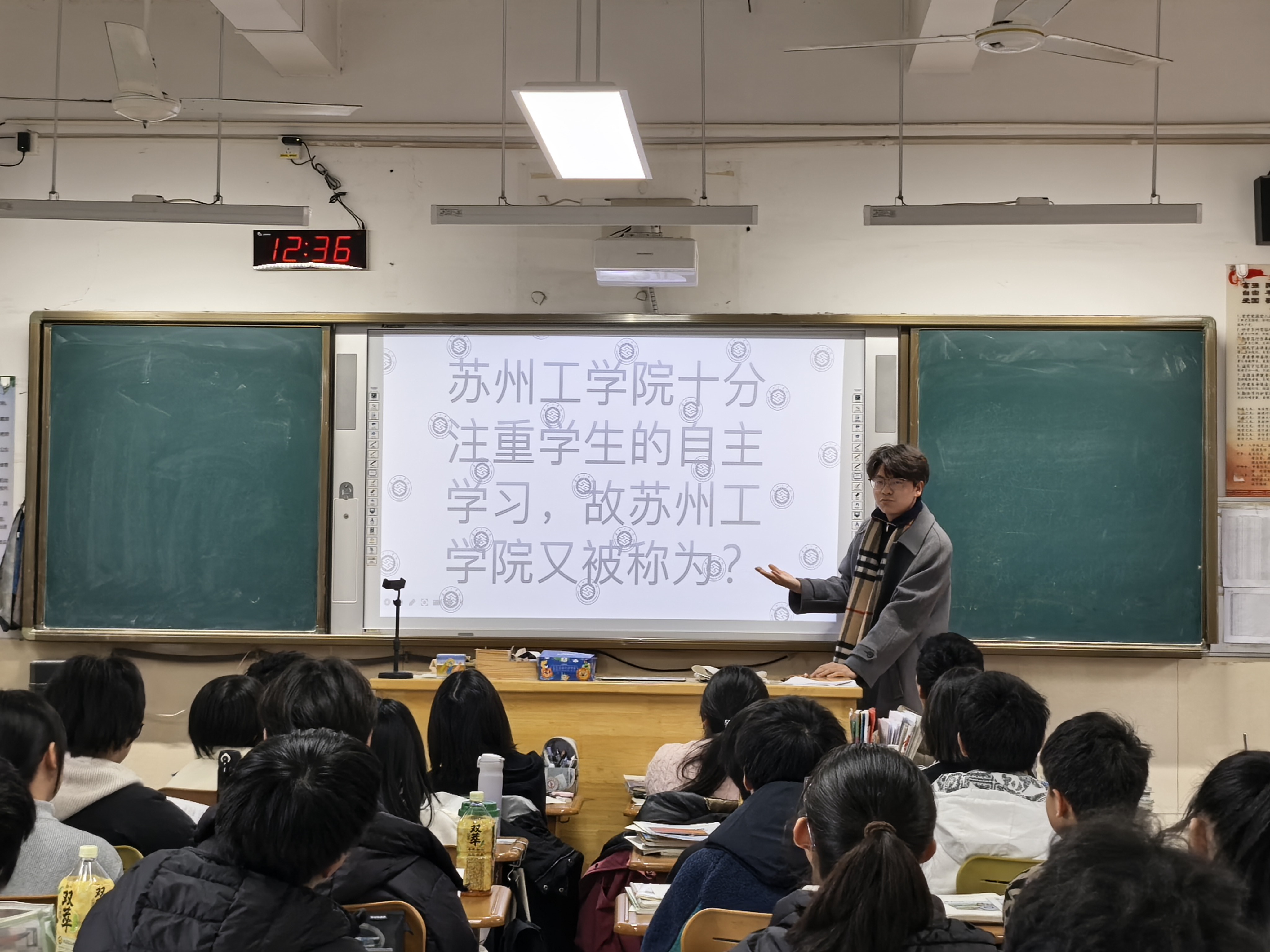 近日,苏州工学院数学与统计学院“青衿筑梦—苏工学子母校行”活动团队走进常熟市中学开展宣讲实践活动。团队向母校师长递送喜报,以反哺之心致敬常熟市中学的悉心栽培,深化校际情谊。围绕学校办学特色、专业实力与发展前景开展系统宣讲,全方位展示苏州工学院的育人底蕴与校园风貌,为市中学子打开了解大学的窗口。结合备考痛点分享实用经验,同步搭建问答交流平台,与学弟学妹共绘未来蓝图,助力他们锚定目标、坚定前行。(通讯员 刘娴 郭依宁)