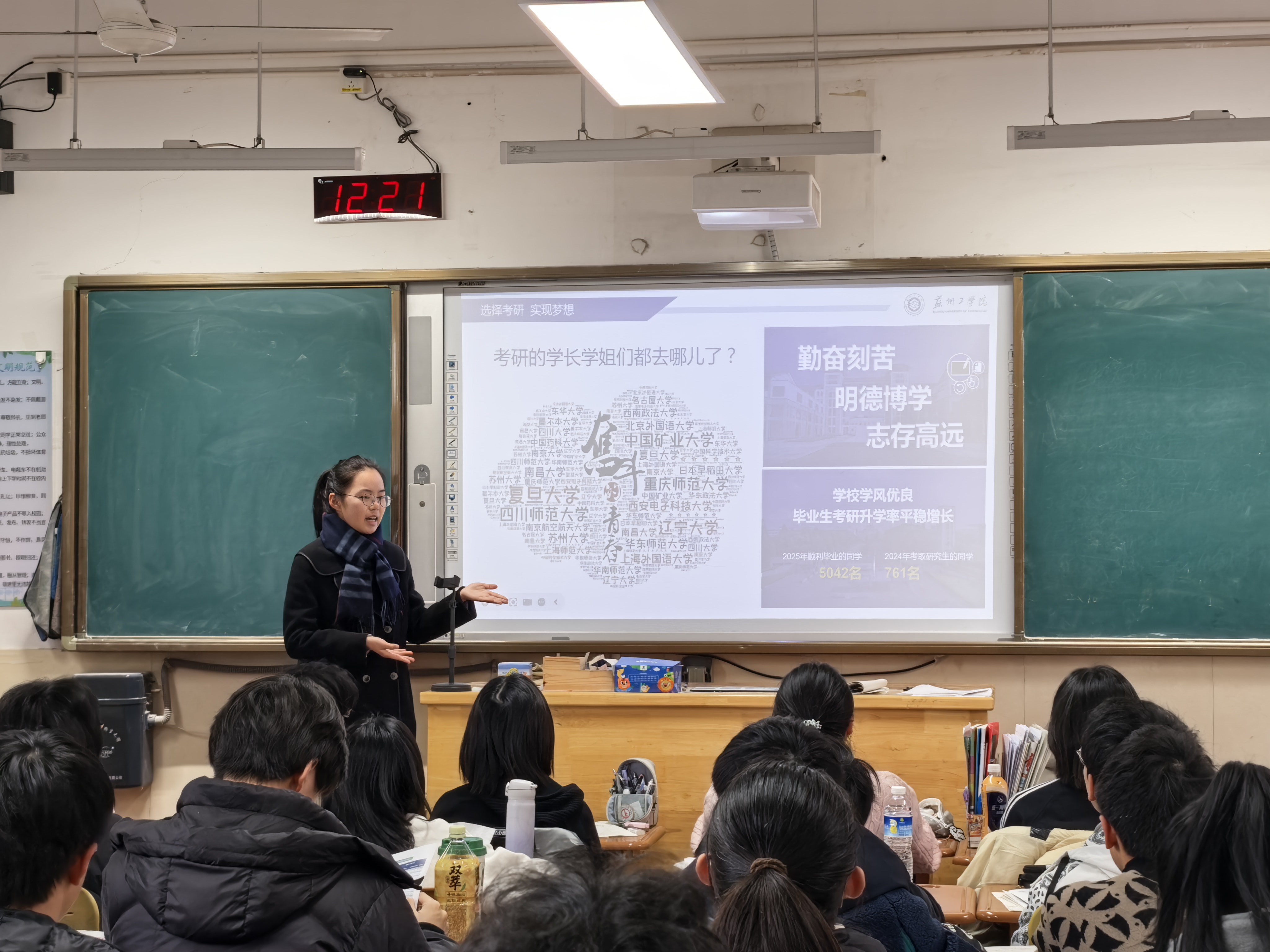 图为团队成员介绍苏州工学院考研去向,考研升学率。朱钱沐 供图