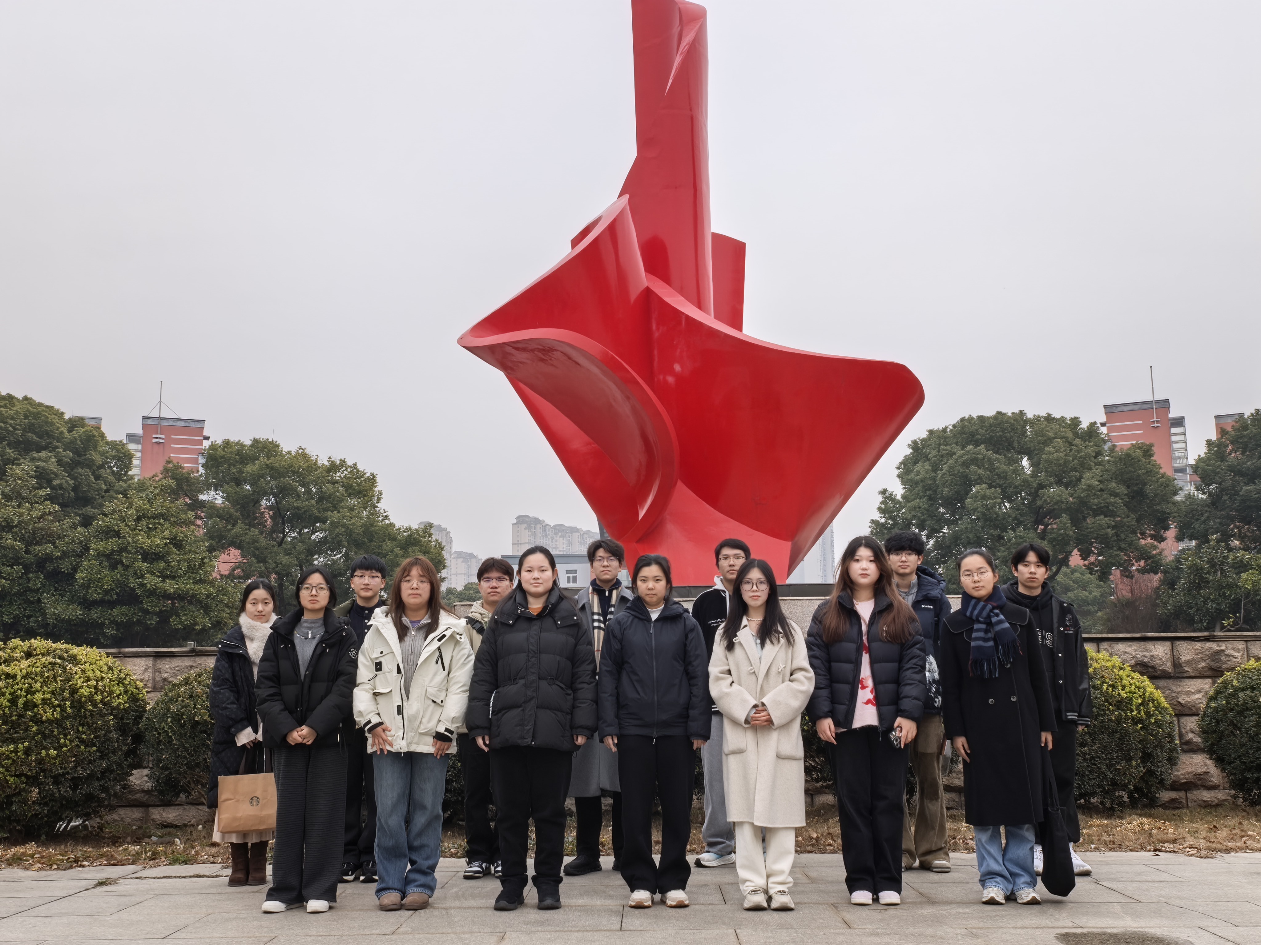 图为全体成员在常熟市中学雕塑前合影。李何琪 供图