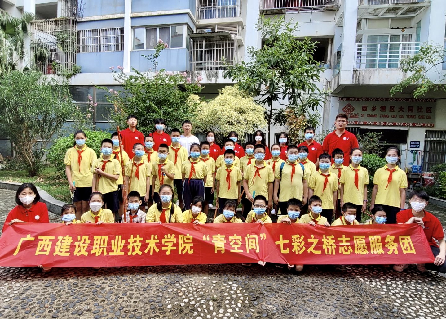 中国青年网南宁8月11日电(通讯员 黎丹 马家豪) 8月12日,广西建设职业技术学院“青空间”七彩之桥志愿服务团走进西乡塘区大同社区,组织社区儿童开展了黄色阳光民俗团辅活动、“民族团结”橙色手工趣味课堂和“紫袖青春践我行”社区清洁志愿服务活动。