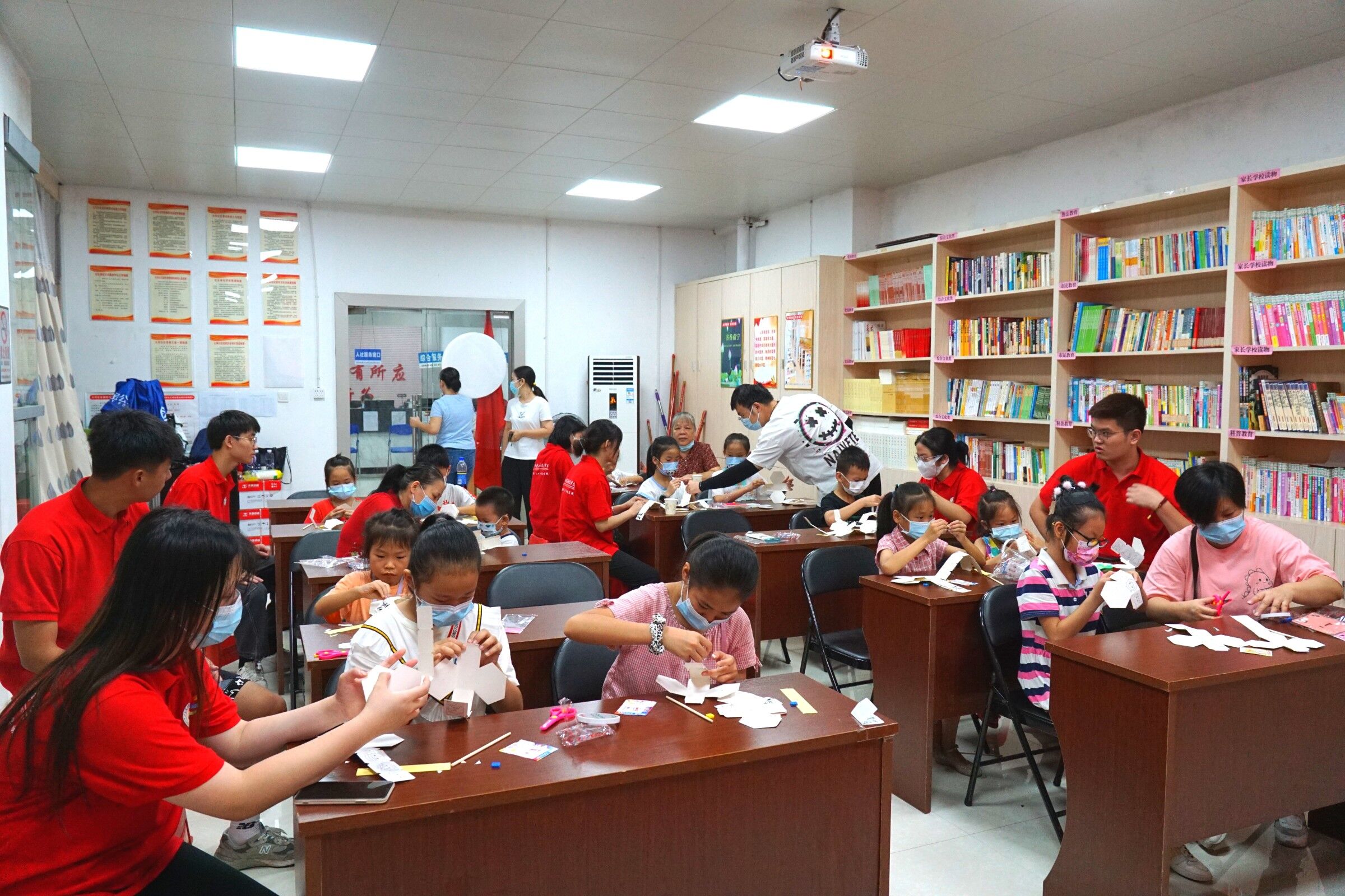 图为志愿者与小朋友共同制作民俗文化手工艺品。中国青年网通讯员 黄诗洋摄