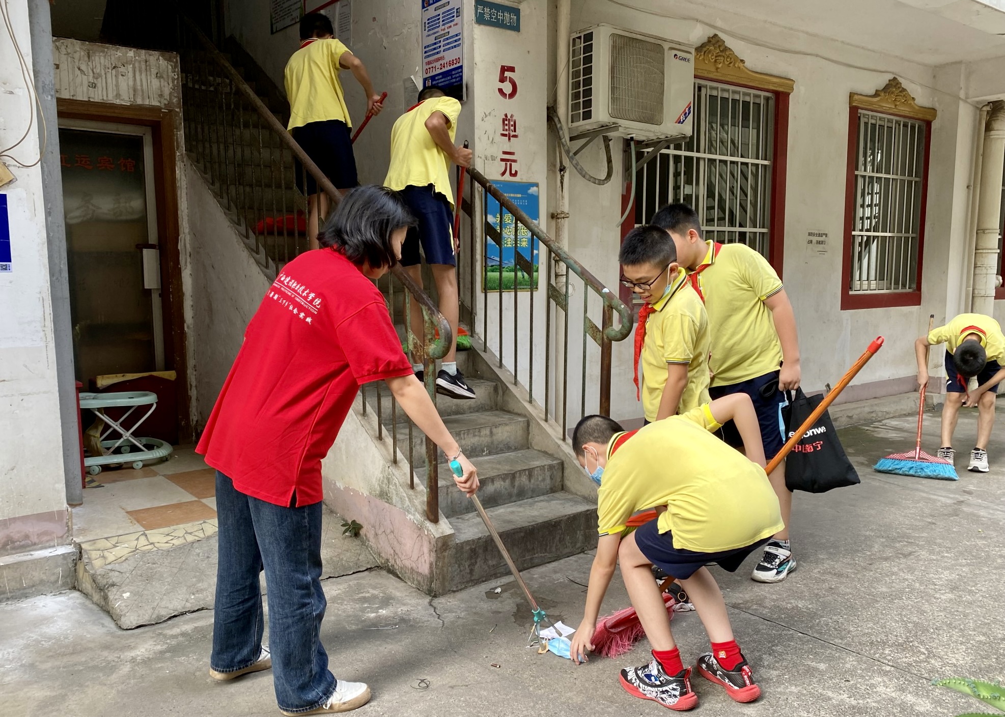 图为小朋友们正在清洁打扫社区场所。中国青年网通讯员 黄诗洋摄