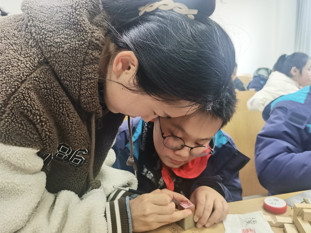 中国青年网镇江1月19日电(通讯员 冷艳 毛锦裳 周嘉雯)为了让小学生更好地了解汉字的发展文化,感受汉字的魅力,2023年9月-2024年1月,江苏大学梦溪印社组织大学生志愿者联合周边小学开展“方寸乾坤 大美汉字 非遗文化代代传”学习体验活动。志愿者带领小学生们从认识篆刻工具、讲解工具的用法开始,到篆刻实操以及最后的成果展示和表彰等,篆刻之美在于方寸间见大世界,让小学生们深入学习了书法及篆刻艺术,感受中华优秀传统文化的无穷魅力。活动中大家不仅欣赏到了篆刻独特之美,还对篆刻产生了浓厚兴趣。据了解,此次活动是艺术学院与江大社区进行校地合作的一项特色活动,同时也是艺术学院积极响应国家全面实施学校美育浸润行动的深入探索和实践。