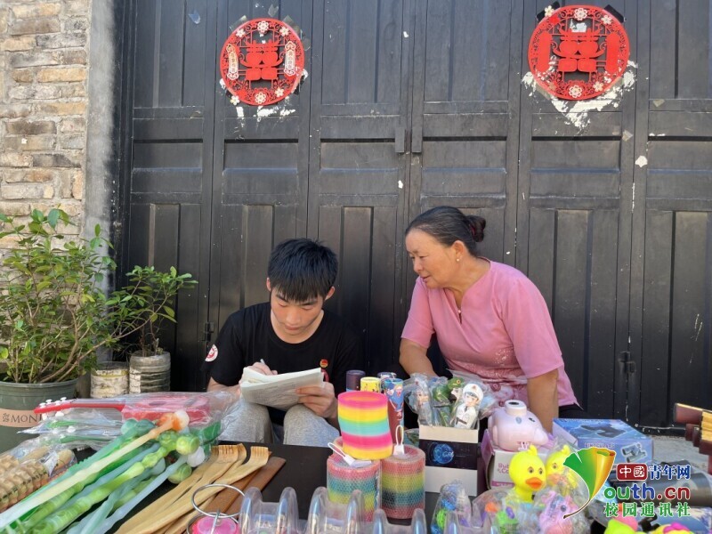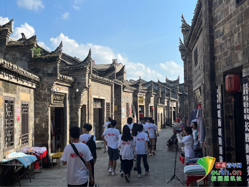 图为团队成员在长胜街进行产业振兴调研,了解当地旅游景点商家营收情况。中国青年网通讯员 谢思荧 摄