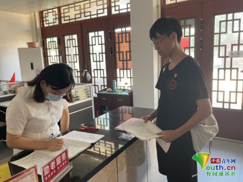 图为团队成员在长胜街游客中心进行文化振兴调研,了解该地文旅状况。中国青年网通讯员 谢思荧 摄