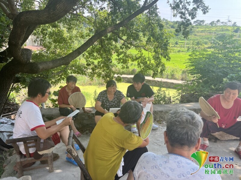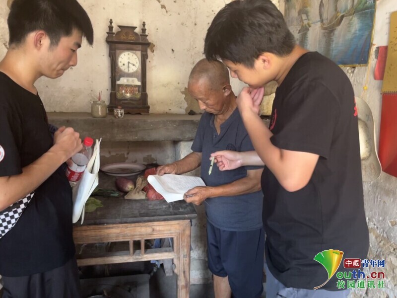 图为团队成员在村民家中进行文化振兴调研。中国青年网通讯员 谢思荧 摄
