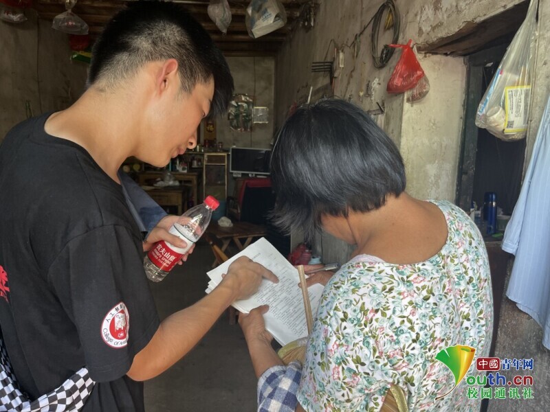 图为团队成员在村民家中进行生态振兴调研。中国青年网通讯员 谢思荧 摄