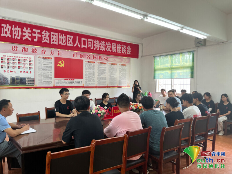 图为团队成员在与当地居民进行生态环境的了解以及对未来的发展进行探讨。中国青年网通讯员 谢思荧 摄
