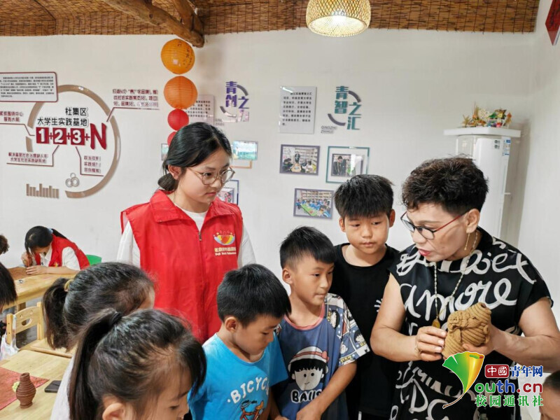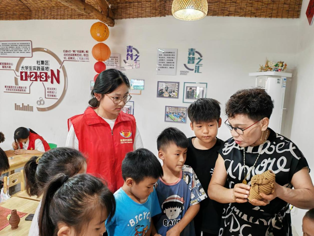 图为非遗传承人为乡村儿童介绍泥塑。任子慧 供图