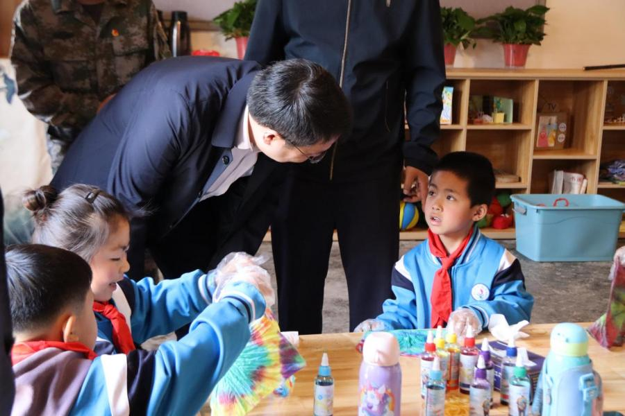 图为团安徽省委书记陈明生亲切看望梧桐村支教点小学生。任子慧 供图