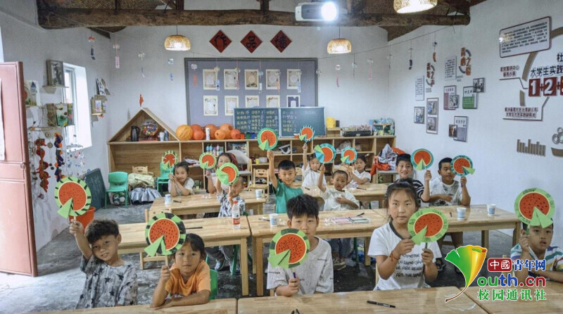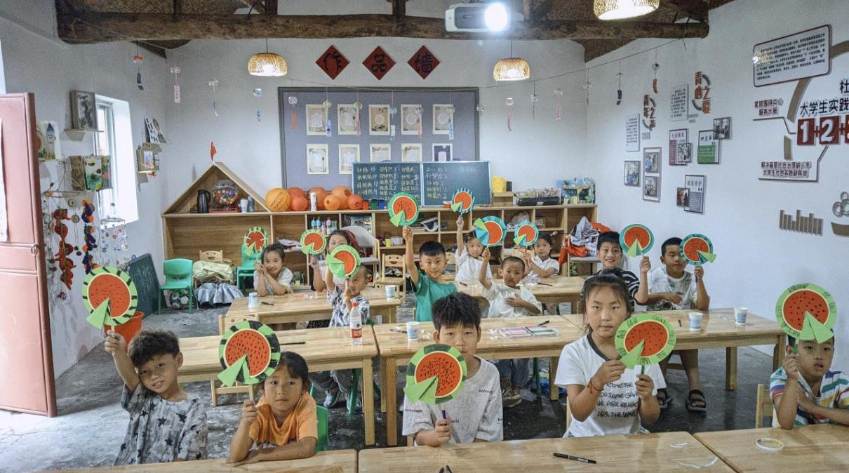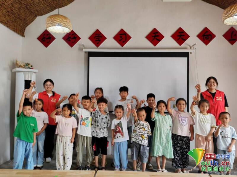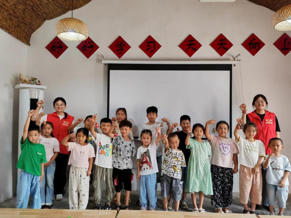 图为“七彩假期,筑梦“红淮””公益支教学生志愿者与乡村儿童合照。任子慧 供图