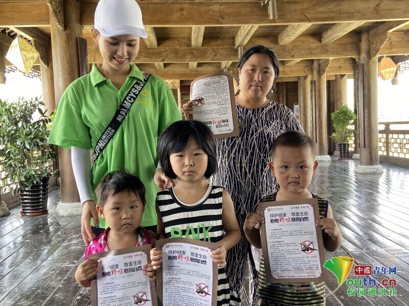 中国青年网重庆9月3日电(通讯员 黎程)2020年8月,为扎根中国大地了解国情民情,通过社会实践坚定理想信念、站稳人民立场,练就过硬本领、投身强国伟业,进一步增强“四个意识”、坚定“四个自信”、做到“两个维护”,重庆旅游职业学院艺术与文化旅游系积极响应上级的号召,组建三下乡团队,为倡导文明生活风尚,积极参与保护野生动物,宣传科学健康文明的生活理念和生活方式,引导基层群众革除陋习不吃野味,达成全民一起保护野生动物的共识,提高公众的文明意识,重庆旅游职业学院“力行少年团”于8月5日到8月8日,前往黔江区小南海自然保护区、阿蓬江国家湿地公园、南海城、灰千梁子自然保护区进行实地调研。