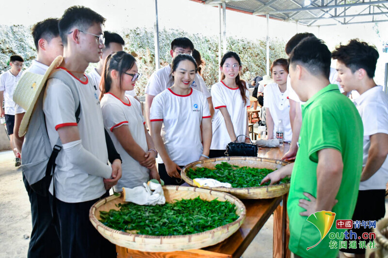 图为实践团成员聆听关于制茶的讲解。中国青年网通讯员 高裕 摄
