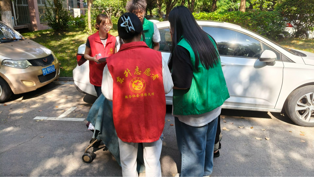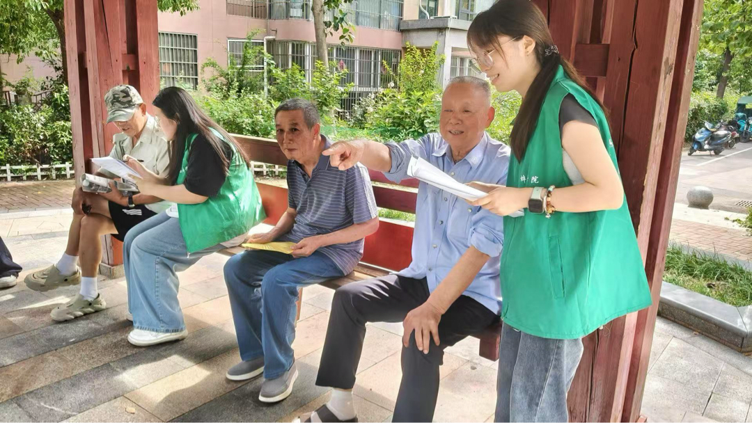 图为实践队员在社区内向居民收集问卷信息。陈敏 供图