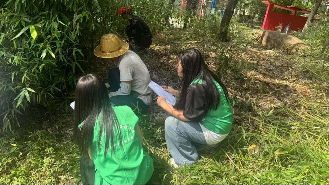 图为实践团成员向修整杂草的工人讲解防诈知识,传递安全提醒。陈喜悦 供图