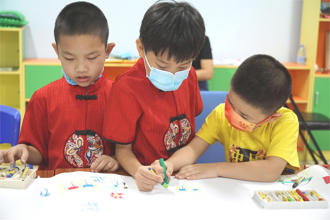 图为小朋友们在民族团结橙色手工趣味课堂。中国青年网通讯员 黄诗洋 摄