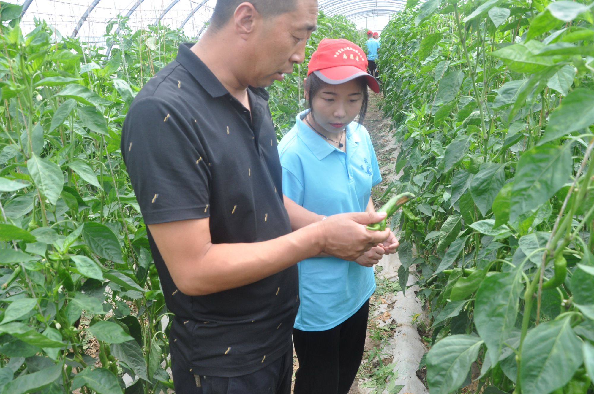 图为志愿者与农场负责人交流蔬菜常见病虫害,推广绿色无污染蔬菜种植技术。中国青年网通讯员 万红山 摄