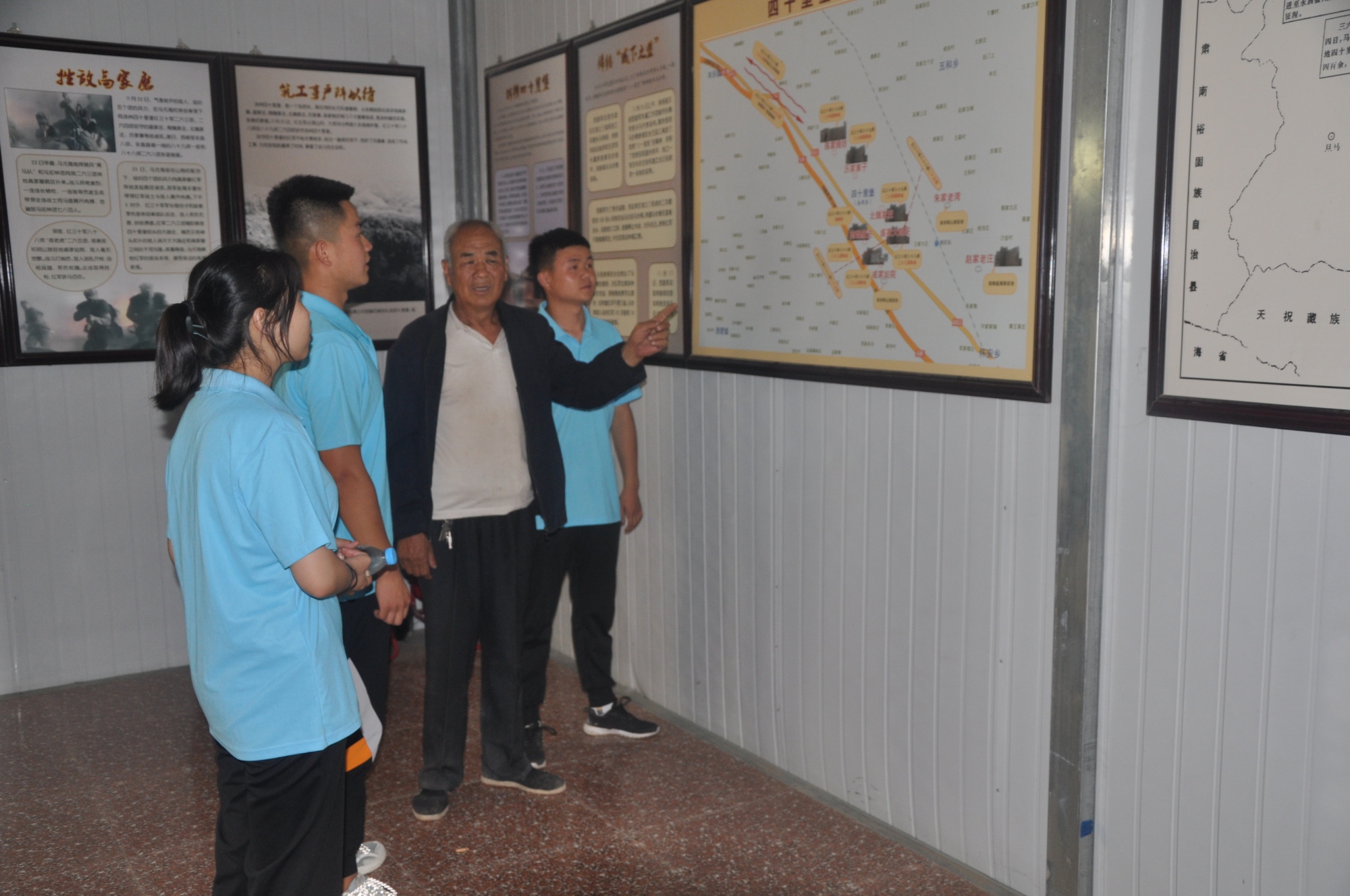 图为西路红军凉州战役纪念馆王大爷为团队成员描述凉州战役形势图及西路红军与凉州的故事,一幅又一幅图片让当年英勇的西路军将士为了人民幸福浴血奋战,血染河西走廊的轰烈场景历历在目。中国青年网通讯员 舒青竹 摄