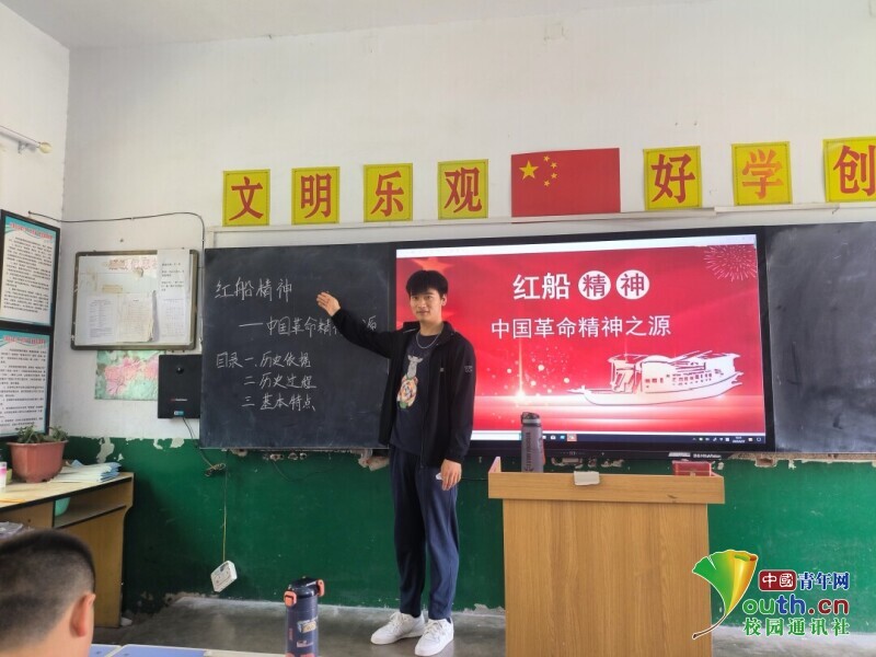 图为团队成员向学生讲述红船精神。中国青年网通讯员 洪星 摄