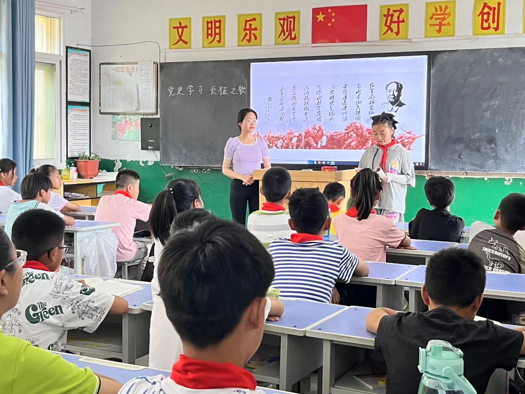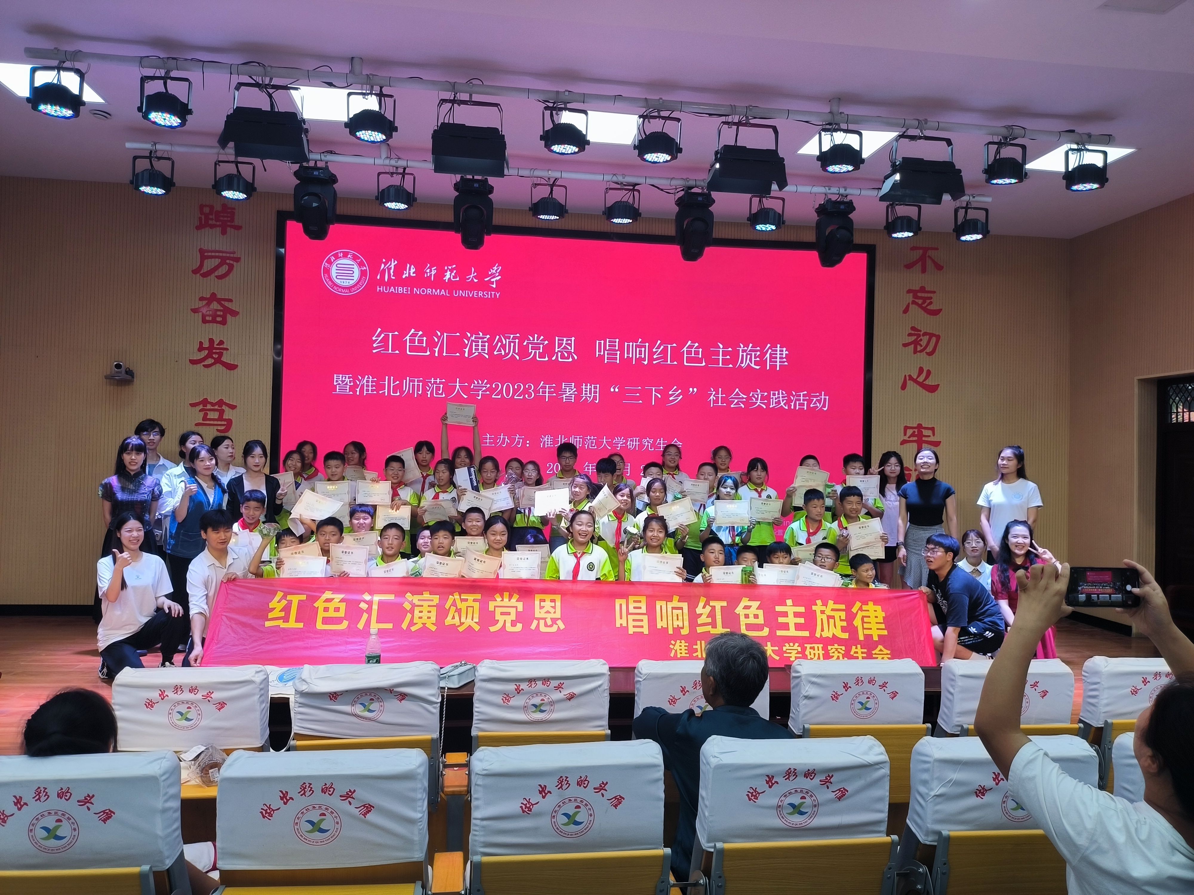 中国青年网淮北8月24日电(通讯员 陈红萍 李双伟)为传递红色基因,培养乡村地区小学生的爱党爱国情怀,2023年7月1日至7日,淮北师范大学研究生会校级重点团队在安徽省淮北市杜集区实验小学组织开展了“红色汇演颂党恩,唱响红色主旋律”等系列社会实践活动,为乡村地区儿童开展红色教育,并进行了红色文艺汇演。本次社会实践活动促进了乡村学生积极吸收红色革命文化精神,进一步巩固了学生们爱党爱国主义情怀。