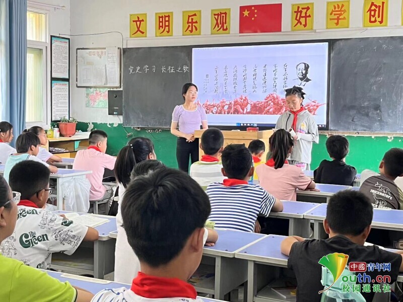 图为团队成员向学生讲述长征知识。中国青年网通讯员 洪星 摄