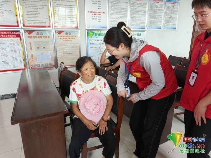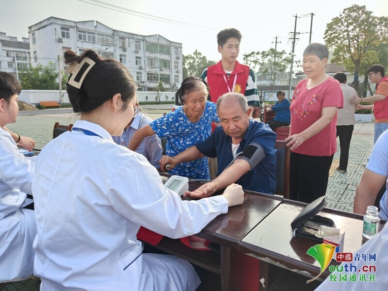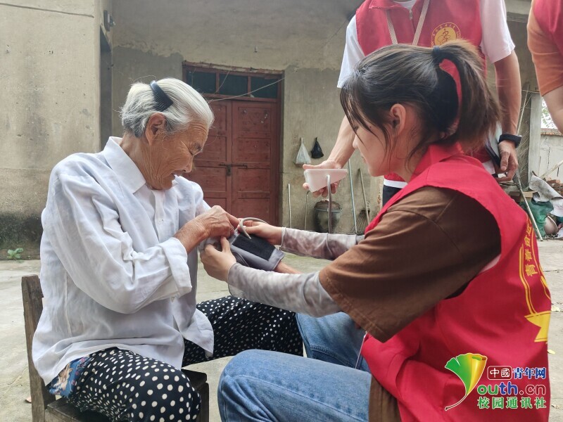 图为志愿者为村民量血压。中国青年网通讯员 邱晨峰 供图