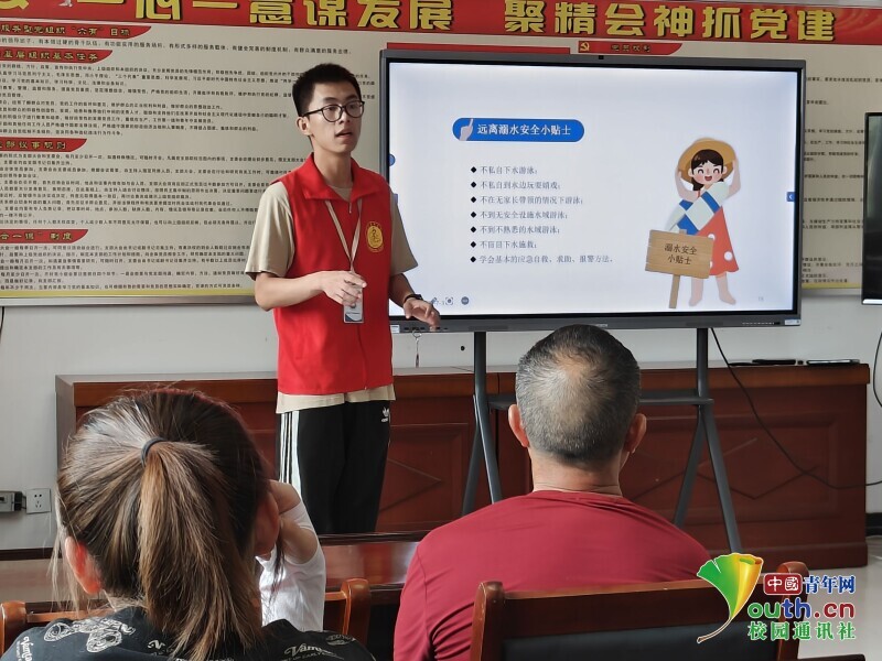 图为志愿者为村民开展防溺水知识讲座。中国青年网通讯员 邱晨峰 供图