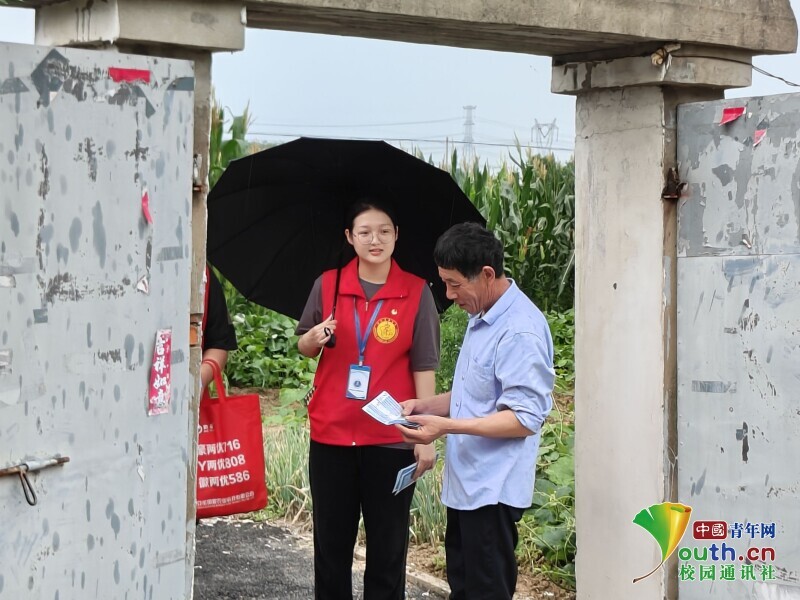 图为志愿者在村干部的带领下到村入户开展宣讲活动。中国青年网通讯员 邱晨峰 供图