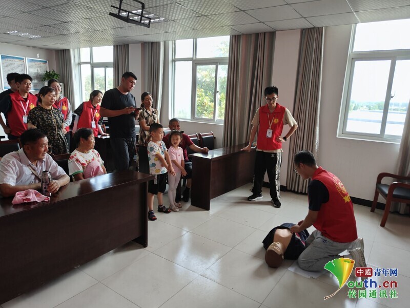 图为志愿者为村民演示心肺复苏急救方法。中国青年网通讯员 邱晨峰 供图