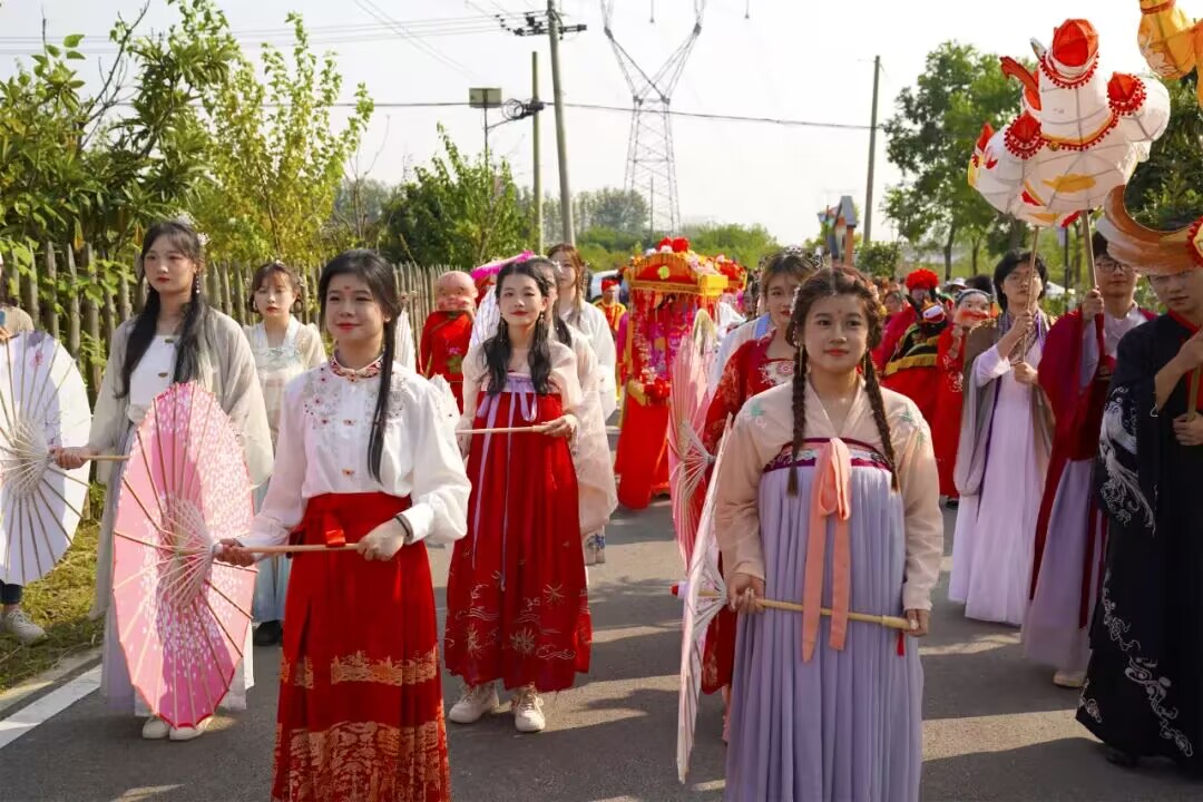 该校财会金融学院团总支书记沈丽萍、专职辅导员梅加佳带领20名志愿者及古筝协会表演团队走进马郢开展“村晚”民俗踩街展演以及快闪活动。男生挥动着马郢特色马灯展现出万马奔腾的气势,女生旋转着油纸伞俏丽多姿,为乡村振兴之路绘出了一道美丽的风景线。民俗踩街后,团队在乡村小路上开展了快闪表演,古筝、琵琶、竹笛、长笛、萨克斯带来了一场民乐与西洋乐的精彩碰撞,《我和我的祖国》《兰亭序》《贝加尔湖畔》等一首首耳熟能详的旋律在乡村中回响。